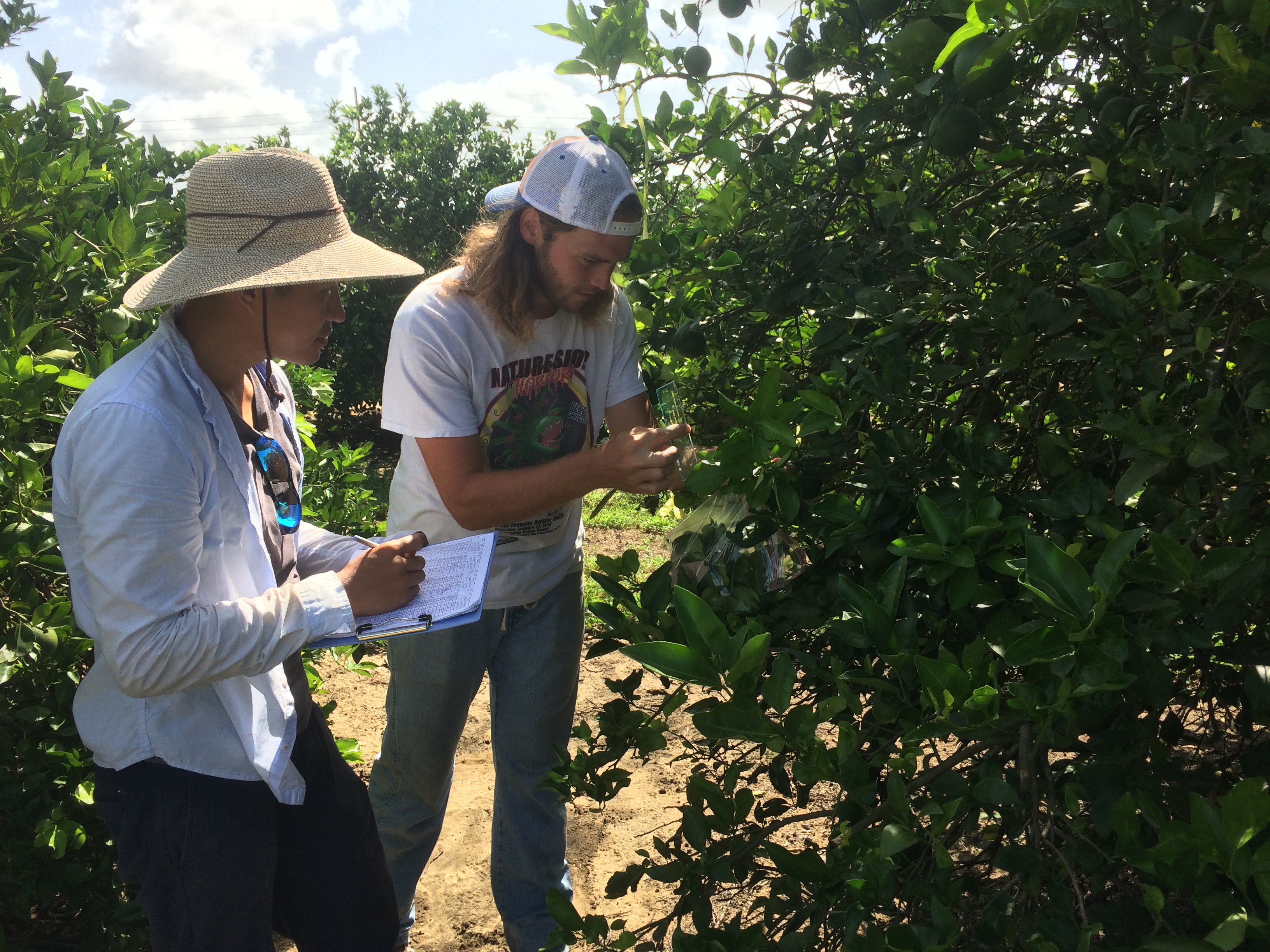 Flushing patterns determine when the two major citrus pests in Florida can reproduce. Both Asian citrus psyllids and citrus leafminer lay their eggs on new flush, so if growers understood these cues they could use them to both manipulate them and to time other management decisions. If a grower knew a major flush was coming insecticides could reduce adult insect populations before they could lay eggs- even better if the grower could force the flush to be concentrated and keep it from spreading out over time. The answers to Orlando’s questions will help us design grower practices that will contribute to managing the two major disease challenges Florida citrus growers face. Orlando, whose given name is Sheng-yang, earned his Master’s degree in horticultural sciences at the National Taiwan University working on pear fruit thinning. He subsequently worked in Belize helping develop a certified budwood source for citrus growers there. I expect his contribution to Florida citriculture to be even more impactful.