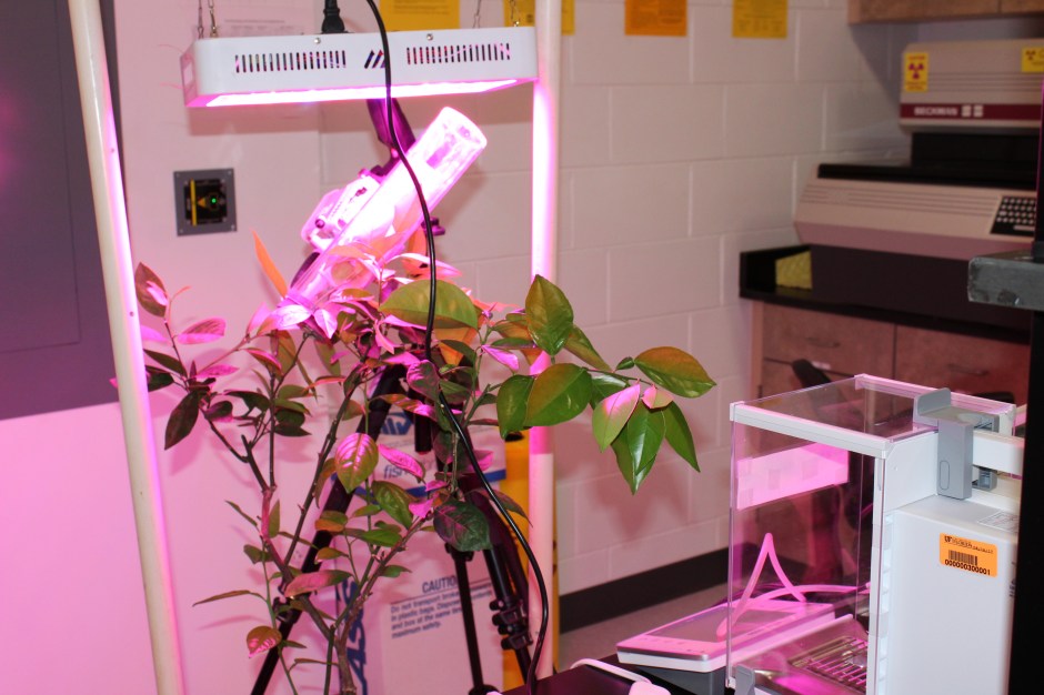 At the tree physiology lab, we hope to improve citrus growth based on understanding its environmental physiology. This particular experiment’s goal to describe the effects of HLB on photosynthesis. Part of this experiment also includes looking at the difference between shoot photosynthesis and leaf photosynthesis. This photosynthetic activity can’t be translated between leaf and tree, so we are trying to determine why. Studying photosynthesis on the leaf level can help garner understanding for the effects of photosynthesis on the whole canopy, but we need to understand what causes differences, too. Mark explained, “[We are] specifically looking at impacts of greening on photosynthesis as well as the amount of photosynthesis acquired from the leaf material and the stem material and what those impacts are over time on maturation.” In terms of the importance of this work for management, “It’s no longer preventing the bacteria from being there; it’s more how do we support the tree in [spite] of the bacteria,” he explained. This would be helpful because Mark believes the current approach to managing HLB isn’t working, so this could open the door to try other approaches.