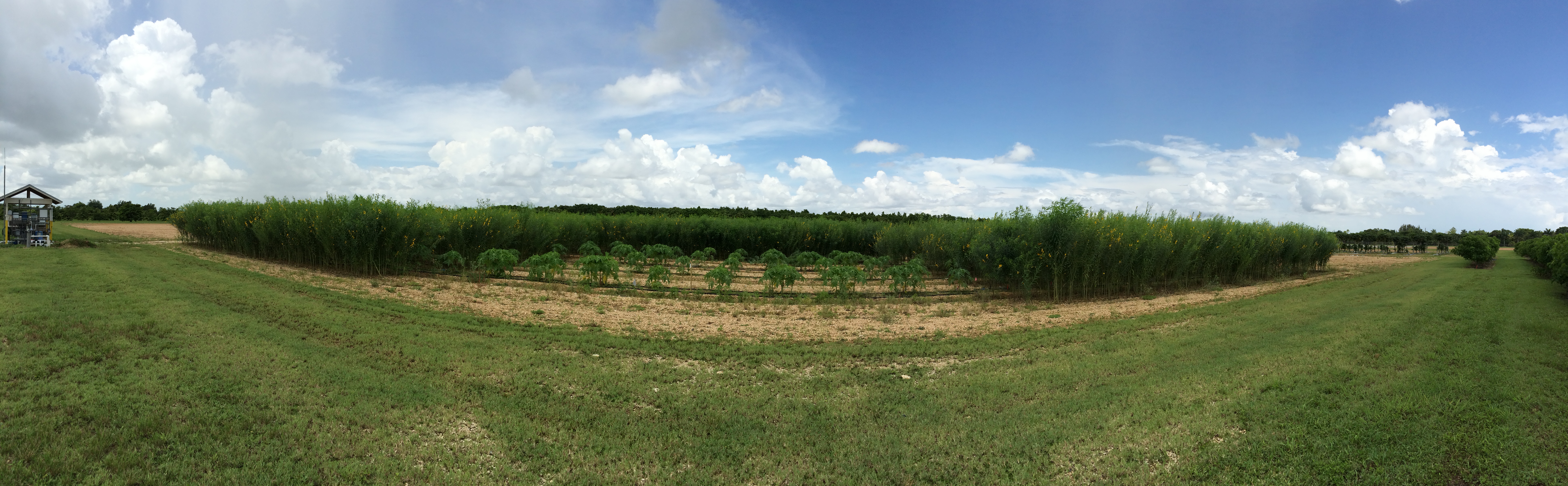 Papaya growers in South Florida and throughout the Caribbean are challenged by damage from high winds, a severe risk during establishment. This project is testing sunn hemp intercropping to reduce wind in the planting. The sunn hemp, a legume is then mowed and used as a mulch on the papaya beds. Preliminary results indicate that the intercrop-mulch system: